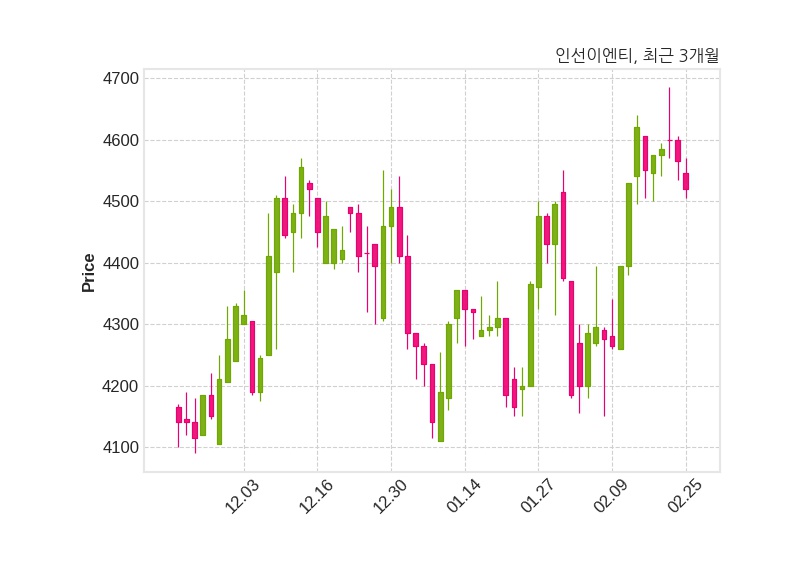한편, 인선이엔티는 장 마감 이후 해당 기업공시를 발표했으며 오늘 종가가 4,520원, 거래량은 144,570주로, 직전 거래일 대비 45원(-0.99%) 하락했다.