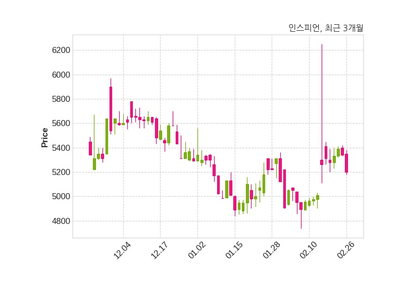 한편, 인스피언은 장 마감 이후 해당 기업공시를 발표했으며 오늘 종가가 5,200원, 거래량은 51,914주로, 직전 거래일 대비 140원(-2.62%) 하락했다.