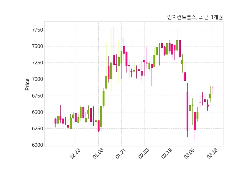 한편, 인지컨트롤스의 10시 22분 현재주가는 6,870원으로 직전 거래일 대비 100원(+1.48%) 상승이며, 거래량은 36,103주이다.