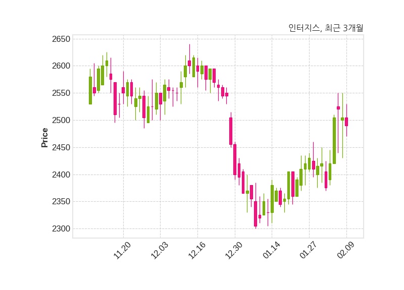 한편, 인터지스의 15시 20분 현재주가는 2,490원으로 직전 거래일 대비 15원(-0.6%) 하락이며, 거래량은 51,982주이다.