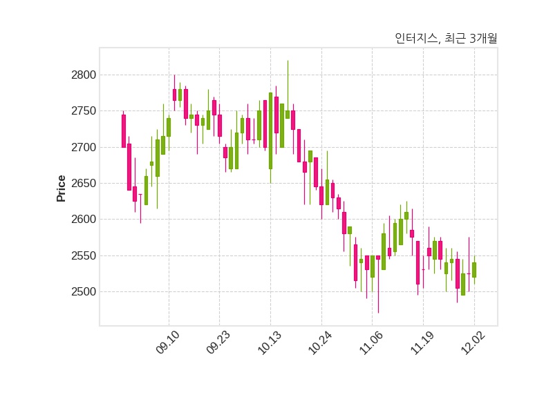 한편, 인터지스의 15시 10분 현재주가는 2,540원으로 직전 거래일 대비 15원(+0.59%) 상승이며, 거래량은 61,944주이다.