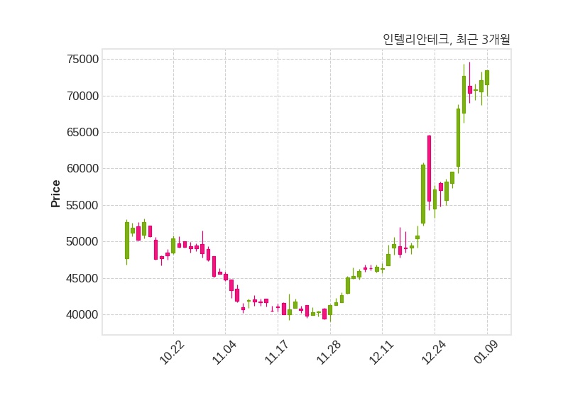 한편, 인텔리안테크는 장 마감 이후 해당 기업공시를 발표했으며 오늘 종가가 73,500원, 거래량은 147,266주로, 직전 거래일 대비 1,400원(+1.94%) 상승했다.