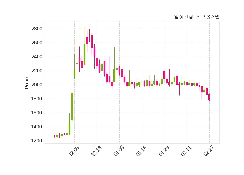 한편, 일성건설은 장 마감 이후 해당 기업공시를 발표했으며 오늘 종가가 1,790원, 거래량은 494,774주로, 직전 거래일 대비 73원(-3.92%) 하락했다.