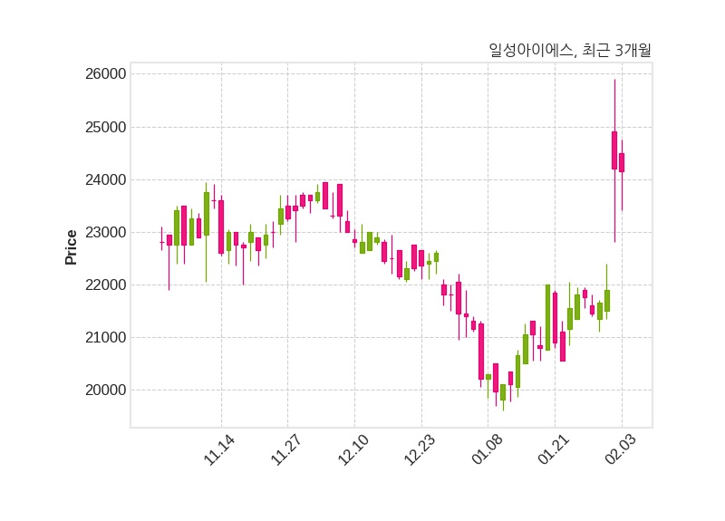 한편, 일성아이에스는 장 마감 이후 해당 기업공시를 발표했으며 오늘 종가가 24,150원, 거래량은 36,502주로, 직전 거래일 대비 50원(-0.21%) 하락했다.