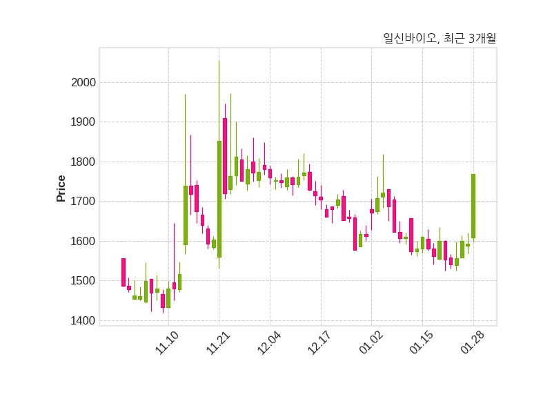 한편, 일신바이오의 14시 44분 현재주가는 1,768원으로 직전 거래일 대비 175원(+10.99%) 상승이며, 거래량은 611,180주이다.