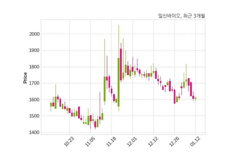 한편, 일신바이오는 장 마감 이후 해당 기업공시를 발표했으며 오늘 종가가 1,610원, 거래량은 231,845주로, 직전 거래일 대비 4원(+0.25%) 상승했다.