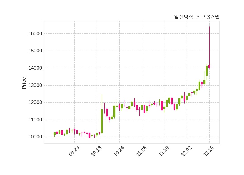 한편, 일신방직의 15시 04분 현재주가는 14,010원으로 직전 거래일 대비 90원(-0.64%) 하락이며, 거래량은 631,291주이다.