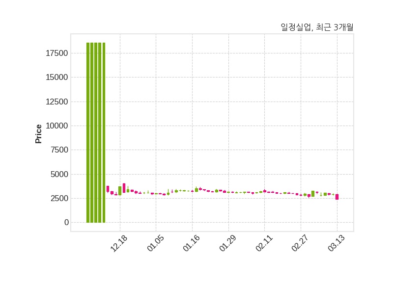 한편, 일정실업은 장 마감 이후 해당 기업공시를 발표했으며 오늘 종가가 2,400원, 거래량은 175,040주로, 직전 거래일 대비 525원(-17.95%) 하락했다.