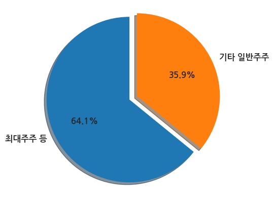 현재 최대주주 등 특별관계자의 소유주식은 총 3,846,444주로 발행주식 총수의 64.11%이다.