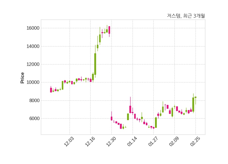 한편, 저스템의 11시 11분 현재주가는 8,390원으로 직전 거래일 대비 90원(+1.08%) 상승이며, 거래량은 2,347,470주이다.