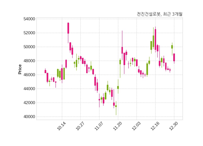 한편, 전진건설로봇은 장 마감 이후 해당 기업공시를 발표했으며 오늘 종가가 47,950원, 거래량은 91,533주로, 직전 거래일 대비 2,250원(-4.48%) 하락했다.