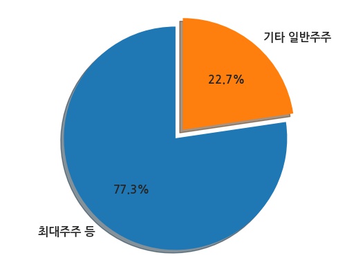 현재 최대주주 등 특별관계자의 소유주식은 총 11,284,766주로 발행주식 총수의 77.33%이다.