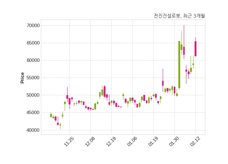 한편, 전진건설로봇은 장 마감 이후 해당 기업공시를 발표했으며 오늘 종가가 61,200원, 거래량은 884,400주로, 직전 거래일 대비 2,200원(+3.73%) 상승했다.