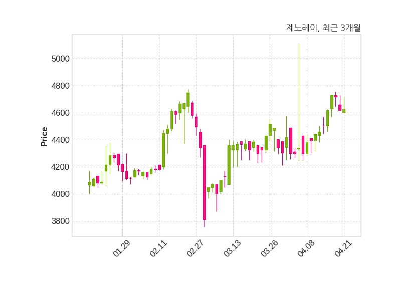 제노레이는 특별관계자 박병욱의 지분율이 26.84%에서 26.9%로 변동했다고 21일 공시했다. 한편, 제노레이의 15시 16분 현재주가는 4,625원으로 직전 거래일 대비 5원(+0.11%) 상승이며, 거래량은 31,497주이다.