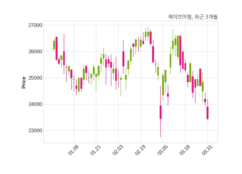 제이브이엠은 이동환에서 김상욱으로 대표이사를 변경했다고 31일 공시했다. 변경 사유는 임기만료 퇴임이다. 한편, 제이브이엠은 장 마감 이후 해당 기업공시를 발표했으며 오늘 종가가 23,450원, 거래량은 30,038주로, 직전 거래일 대비 650원(-2.7%) 하락했다.공시 전문으로 이동