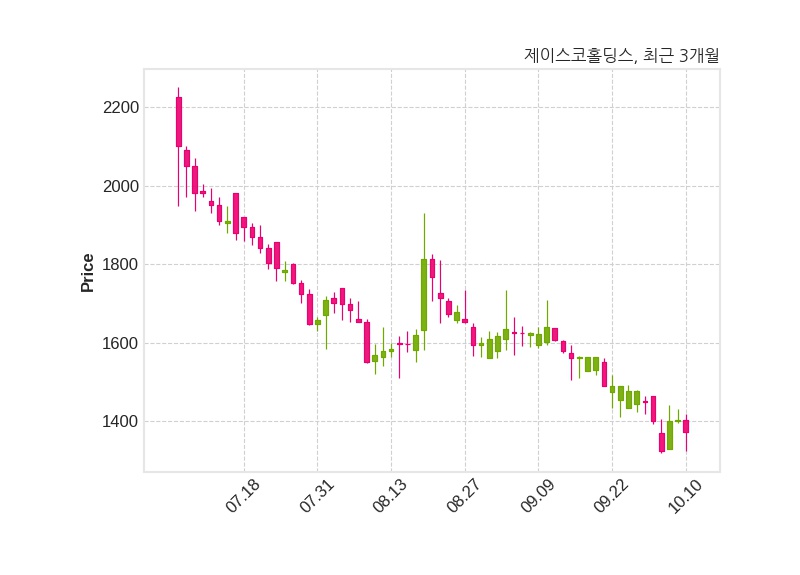 제이스코홀딩스는 특별관계자 캐디언스시스템의 지분율이 6.83%에서 7.22%로 변동했다고 10일 공시했다. 한편, 제이스코홀딩스는 장 마감 이후 해당 기업공시를 발표했으며 오늘 종가가 1,372원, 거래량은 561,445주로, 직전 거래일 대비 32원(-2.28%) 하락했다.