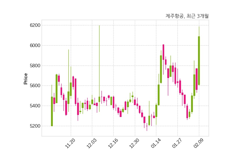 한편, 제주항공은 장 마감 이후 해당 기업공시를 발표했으며 오늘 종가가 6,090원, 거래량은 1,208,880주로, 직전 거래일 대비 530원(+9.53%) 상승했다.