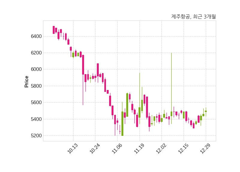 한편, 제주항공은 장 마감 이후 해당 기업공시를 발표했으며 오늘 종가가 5,500원, 거래량은 110,554주로, 직전 거래일 대비 40원(+0.73%) 상승했다.