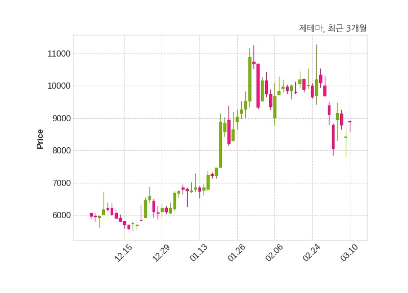한편, 제테마는 장 마감 이후 해당 기업공시를 발표했으며 오늘 종가가 8,890원, 거래량은 259,720주로, 직전 거래일 대비 460원(+5.46%) 상승했다.