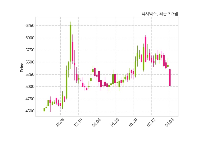한편, 젝시믹스는 장 마감 이후 해당 기업공시를 발표했으며 오늘 종가가 5,020원, 거래량은 709,670주로, 직전 거래일 대비 420원(-7.72%) 하락했다.