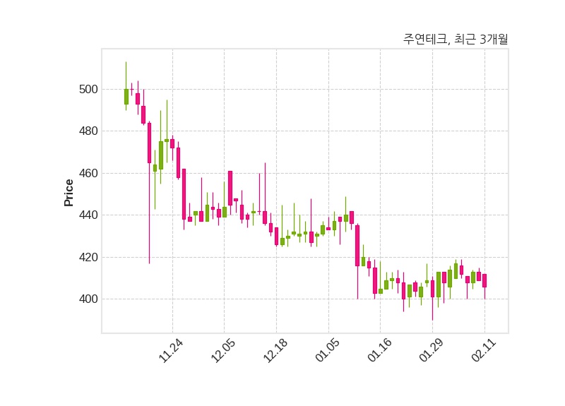 한편, 주연테크는 장 마감 이후 해당 기업공시를 발표했으며 오늘 종가가 406원, 거래량은 319,192주로, 직전 거래일 대비 3원(-0.73%) 하락했다.