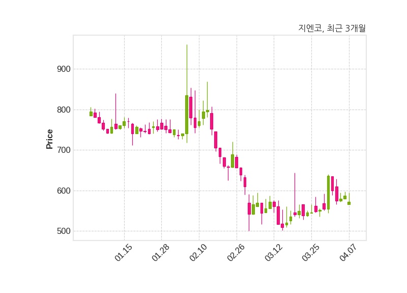 한편, 지엔코는 장 마감 이후 해당 기업공시를 발표했으며 오늘 종가가 572원, 거래량은 56,648주로, 직전 거래일 대비 15원(-2.56%) 하락했다.