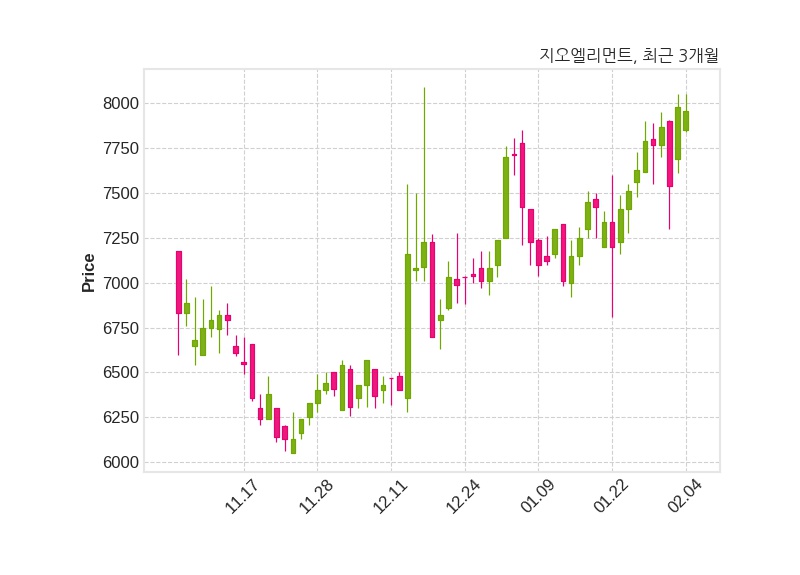 한편, 지오엘리먼트의 11시 11분 현재주가는 7,960원으로 직전 거래일 대비 20원(-0.25%) 하락이며, 거래량은 27,967주이다.