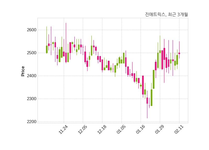 한편, 진매트릭스는 장 마감 이후 해당 기업공시를 발표했으며 오늘 종가가 2,495원, 거래량은 93,420주로, 직전 거래일 대비 5원(+0.2%) 상승했다.