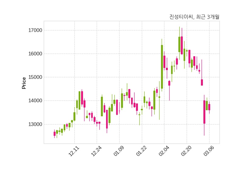 한편, 진성티이씨의 10시 45분 현재주가는 13,600원으로 직전 거래일 대비 380원(-2.72%) 하락이며, 거래량은 45,011주이다.