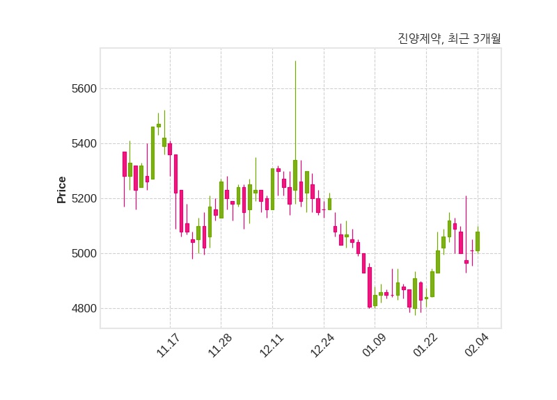 한편, 진양제약은 장 마감 이후 해당 기업공시를 발표했으며 오늘 종가가 5,080원, 거래량은 28,367주로, 직전 거래일 대비 70원(+1.4%) 상승했다.