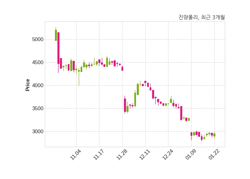 한편, 진양폴리우레탄은 장 마감 이후 해당 기업공시를 발표했으며 오늘 종가가 2,955원, 거래량은 37,313주로, 직전 거래일 대비 35원(+1.2%) 상승했다.