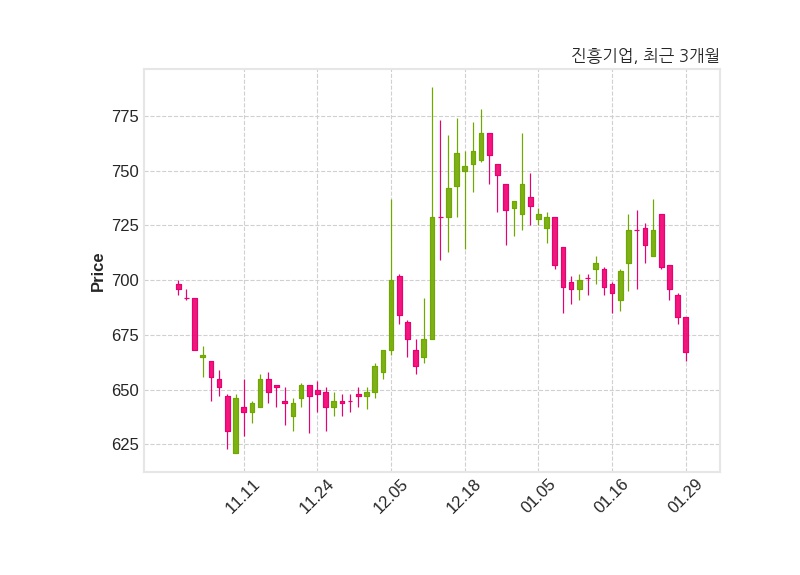 한편, 진흥기업의 09시 35분 현재주가는 667원으로 직전 거래일 대비 16원(-2.34%) 하락이며, 거래량은 277,916주이다.