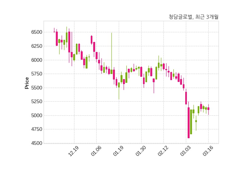 한편, 청담글로벌의 11시 59분 현재주가는 5,100원으로 직전 거래일 대비 40원(-0.78%) 하락이며, 거래량은 21,556주이다.