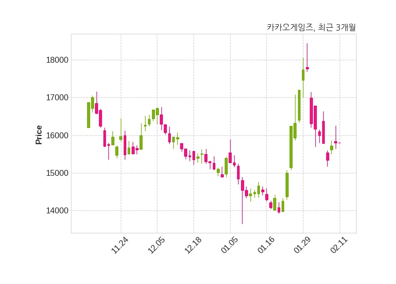한편, 카카오게임즈는 장 시작 전에 해당 기업공시를 발표했으며 전날 종가가 15,800원이었다.