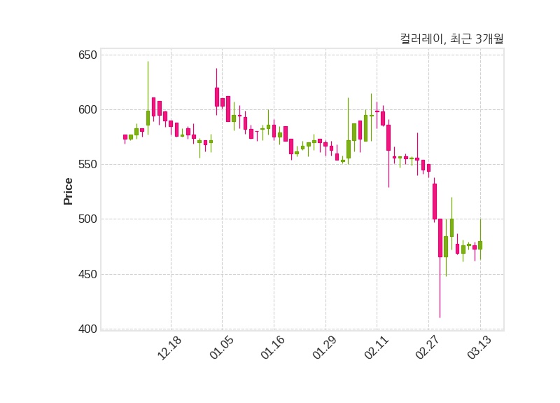 한편, 컬러레이는 장 마감 이후 해당 기업공시를 발표했으며 오늘 종가가 480원, 거래량은 114,684주로, 직전 거래일 대비 7원(+1.48%) 상승했다.