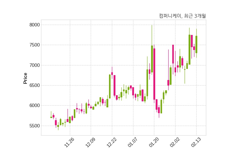 한편, 컴퍼니케이의 14시 43분 현재주가는 7,720원으로 직전 거래일 대비 340원(+4.61%) 상승이며, 거래량은 217,638주이다.