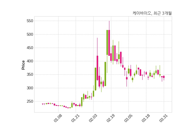 케이바이오는 조정영에서 조안협, 이영철로 대표이사를 변경했다고 31일 공시했다. 변경 사유는 신규임원 선임이다. 한편, 케이바이오는 장 마감 이후 해당 기업공시를 발표했으며 오늘 종가가 338원, 거래량은 1,015,737주로, 직전 거래일 대비 3원(-0.88%) 하락했다.공시 전문으로 이동