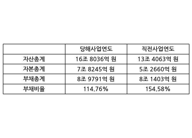 또한, 이번사업연도의 자산총계는 16조 8036억 원으로 직전사업연도 대비 25.34% 증가한 한편, 부채총계는 8조 9791억 원으로 10.3% 증가, 자본총계는 7조 8245억 원으로 48.59% 증가했다.