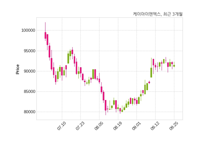 케이아이엔엑스는 특별관계자 MiriCapitalManagementLLC의 지분율이 7.16%에서 6.14%로 변동했다고 25일 공시했다. 한편, 케이아이엔엑스의 10시 06분 현재주가는 91,500원으로 직전 거래일 대비 300원(-0.33%) 하락이며, 거래량은 2,657주이다.