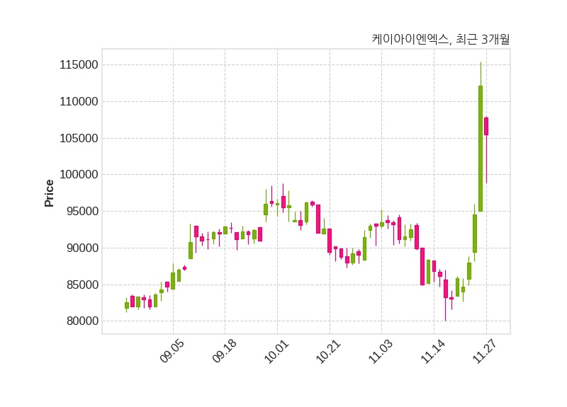 케이아이엔엑스는 특별관계자 MiriCapitalManagementLLC의 지분율이 10.16%에서 9.16%로 변동했다고 27일 공시했다. 한편, 케이아이엔엑스의 14시 21분 현재주가는 105,500원으로 직전 거래일 대비 6,600원(-5.89%) 하락이며, 거래량은 72,657주이다.