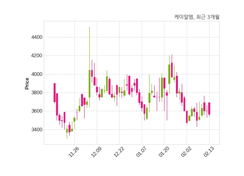 한편, 케이알엠의 12시 08분 현재주가는 3,565원으로 직전 거래일 대비 35원(-0.97%) 하락이며, 거래량은 33,221주이다.