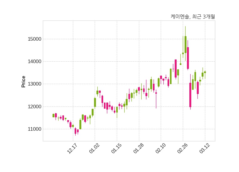 한편, 케이엔솔은 장 마감 이후 해당 기업공시를 발표했으며 오늘 종가가 13,550원, 거래량은 108,157주로, 직전 거래일 대비 60원(+0.44%) 상승했다.