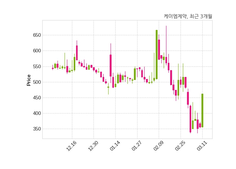 케이엠제약은 특별관계자 강일모의 지분율이 39.08%에서 38.94%로 변동했다고 11일 공시했다. 한편, 케이엠제약의 09시 40분 현재주가는 462원으로 직전 거래일 대비 106원(+29.78%) 상승이며, 거래량은 544,140주이다.
