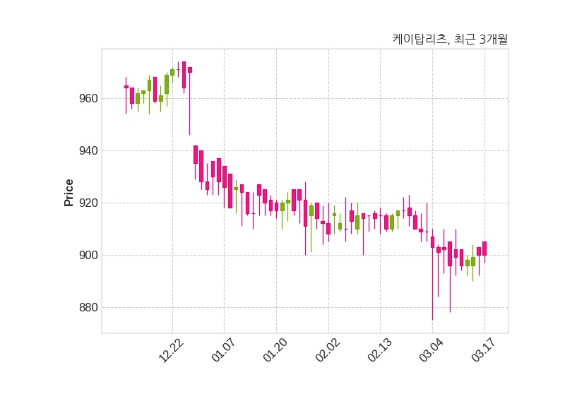 케이탑리츠는 특별관계자 김철의 지분율이 12.184%에서 10.779%로 변동했다고 17일 공시했다. 한편, 케이탑리츠는 장 마감 이후 해당 기업공시를 발표했으며 오늘 종가가 900원, 거래량은 12,462주로, 직전 거래일 대비 변동이없다.