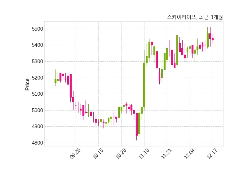 한편, 케이티스카이라이프는 장 마감 이후 해당 기업공시를 발표했으며 오늘 종가가 5,430원, 거래량은 55,627주로, 직전 거래일 대비 10원(-0.18%) 하락했다.