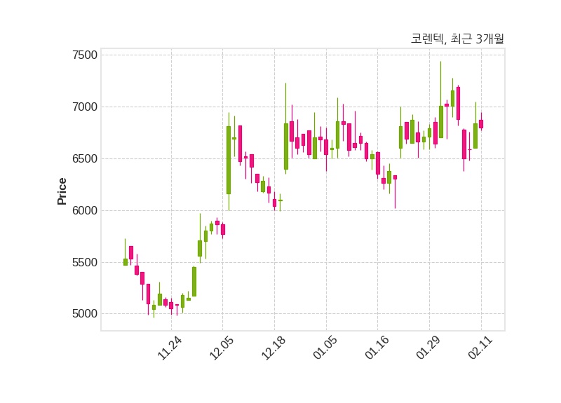 한편, 코렌텍은 장 마감 이후 해당 기업공시를 발표했으며 오늘 종가가 6,800원, 거래량은 62,392주로, 직전 거래일 대비 40원(-0.58%) 하락했다.