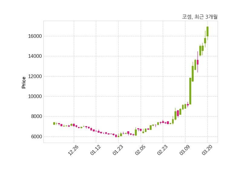 코셈은 특별관계자 이노폴리스파트너스의 지분율이 3.38%에서 5.18%로 변동했다고 20일 공시했다. 한편, 코셈은 장 마감 이후 해당 기업공시를 발표했으며 오늘 종가가 16,930원, 거래량은 163,601주로, 직전 거래일 대비 1,150원(+7.29%) 상승했다.