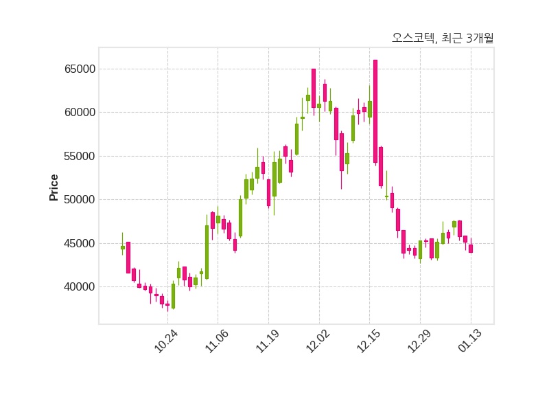 오스코텍은 김OO 외 4인으로부터 주주총회결의효력정지가처분에 관한 소송이 제기됐다고 13일 공시했다.한편, 오스코텍은 장 마감 이후 해당 기업공시를 발표했으며 오늘 종가가 43,950원, 거래량은 308,594주로, 직전 거래일 대비 1,200원(-2.66%) 하락했다.공시 전문으로 이동