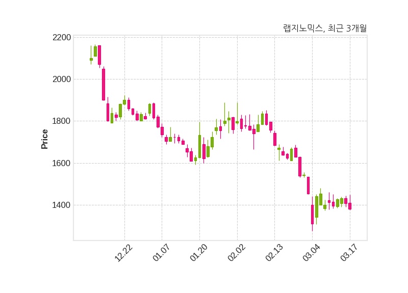 한편, 랩지노믹스의 11시 50분 현재주가는 1,380원으로 직전 거래일 대비 27원(-1.92%) 하락이며, 거래량은 529,919주이다.