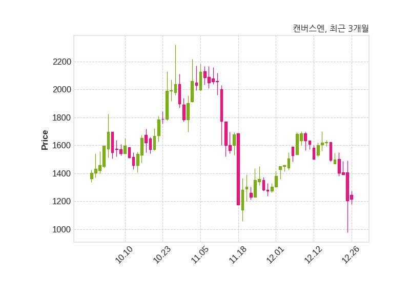 한편, 캔버스엔은 장 마감 이후 해당 기업공시를 발표했으며 오늘 종가가 1,217원, 거래량은 740,538주로, 직전 거래일 대비 13원(+1.08%) 상승했다.